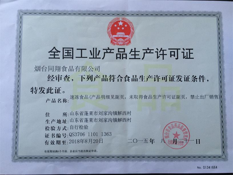 2012年9月     公司順利通過了QS的審核,獲得食品生產許可證,標志著公司的產品可以銷售在全國各個地區及網絡。
